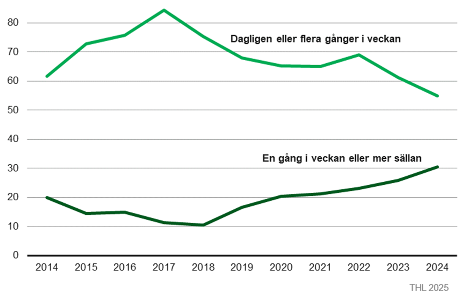 Enligt THL:s färska statistik var andelen buprenorfininjektioner bland substitutionsläkemedel 30 procent år 2024 hos klienter inom drogbehandling och rehabilitering.