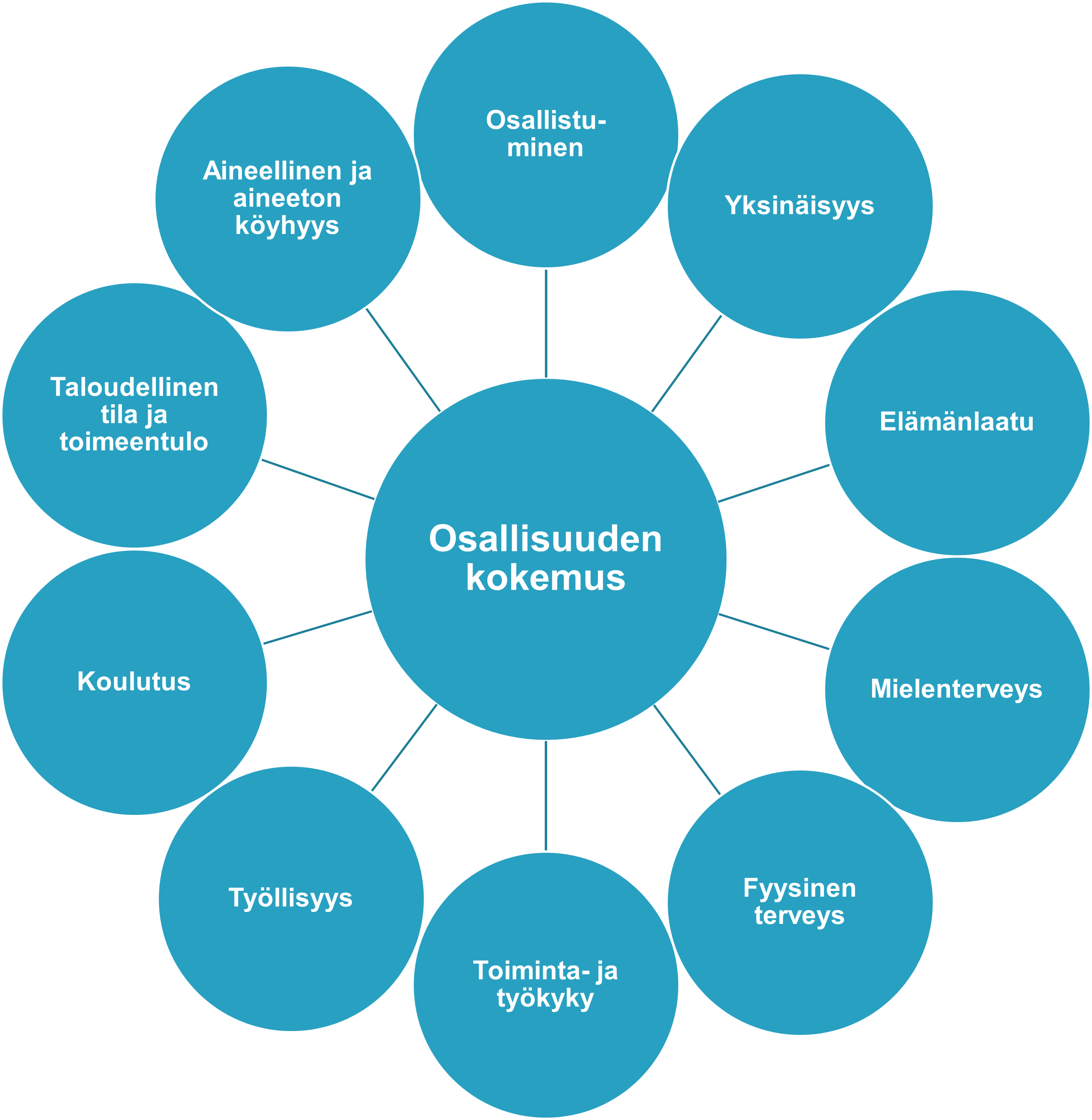 Osallisuuden kokemus on keskeinen osa hyvinvointia. Osallisuusindikaattori kuvailee ihmisten kokemusta merkityksellisyydestä, uskoa toimintamahdollisuuksiin, uskoa vaikutusmahdollisuuksiin omassa elämässä ja elinympäristössä, sekä sosiaalista vuorovaikutusta. Niiden puute viittaa matalaan sosiaaliseen hyvinvointiin ja elämänlaatuun. Osallisuusindikaattorin tulosten on osoitettu olevan yhteydessä esimerkiksi terveyteen, toiminta- ja työkykyyn, mielenterveyshäiriöihin ja elämänlaatuun.