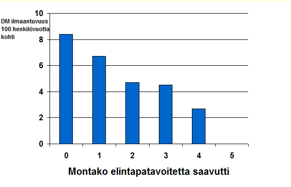 Suomalainen Diabeteksen ehkäisytutkimus DPS osoitti ensimmäisenä, että tyypin 2 diabeteksen ehkäisy on mahdollista elintapoja muuttamalla. Sairastumisriski oli sitä pienempi, mitä useamman elintapatavoitteen henkilö saavutti.