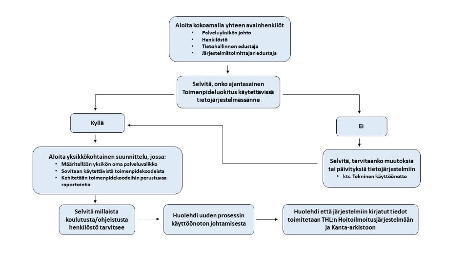 Kuinka edetä toimenpidekoodien käyttöönotossa (klikkaa kuva suuremmaksi)