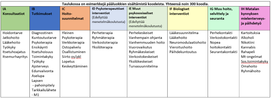 - Peilataan vastaanottojen sisältöä toimenpidekoodeihin: tulkitsevatko kaikki sisällön ja kodin käytön samalla tavalla.