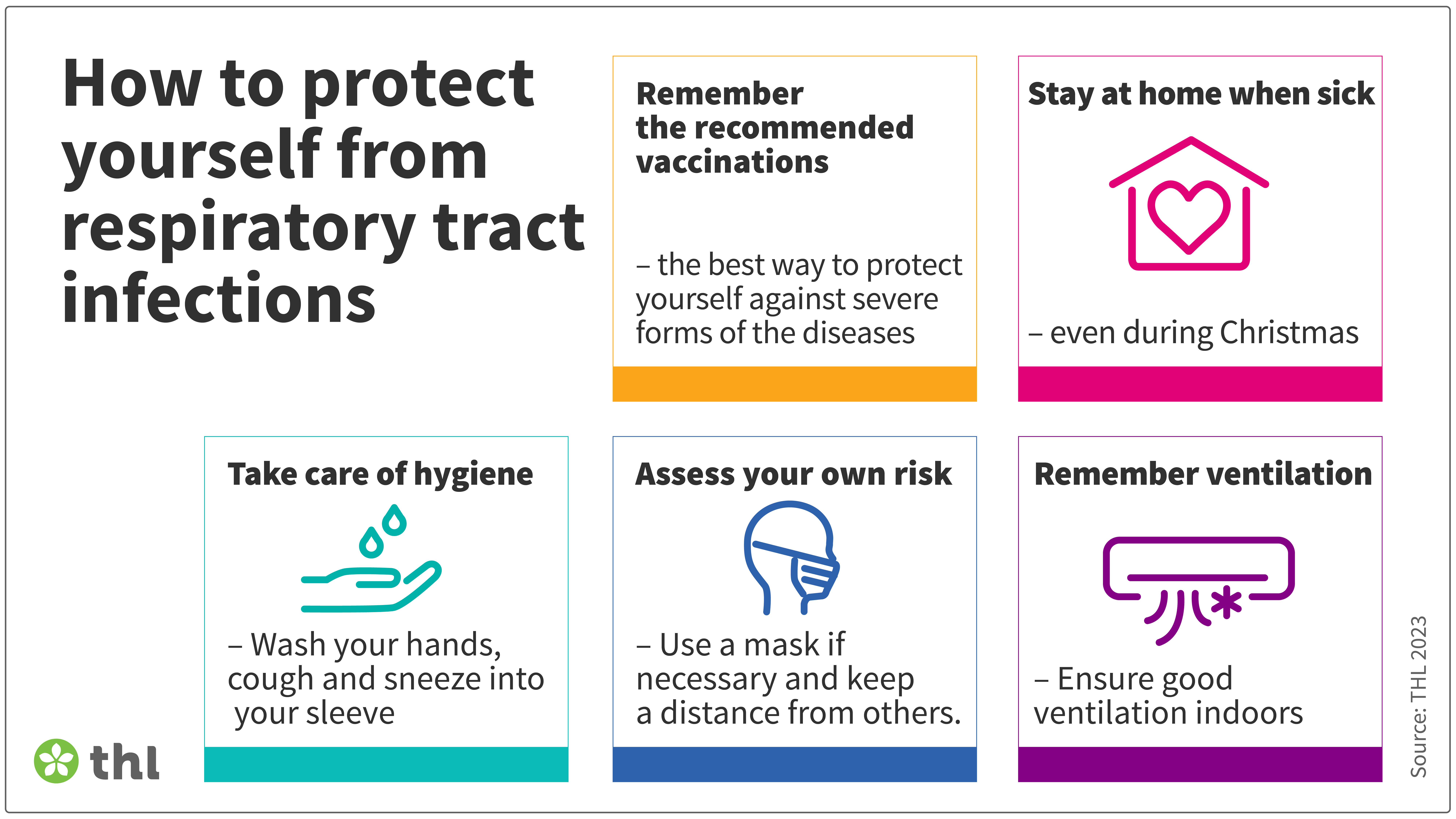 “These methods can be used to combat respiratory tract infections caused by viruses. If you get sick, it’s important to refrain from visiting friends and family during Christmas to prevent infections. By doing this, everyone can protect at-risk groups, such as the elderly,” says THL Chief Specialist Anna Katz.