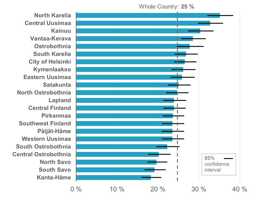 Trust in the functioning of health services was highest in the wellbeing services counties of Central and South Ostrobothnia and Kanta-Häme, where nearly two out of three trusted health services. By contrast, the situation was the poorest in Central and West Uusimaa, Satakunta and North Karelia, where less than half reported trust in health services.
