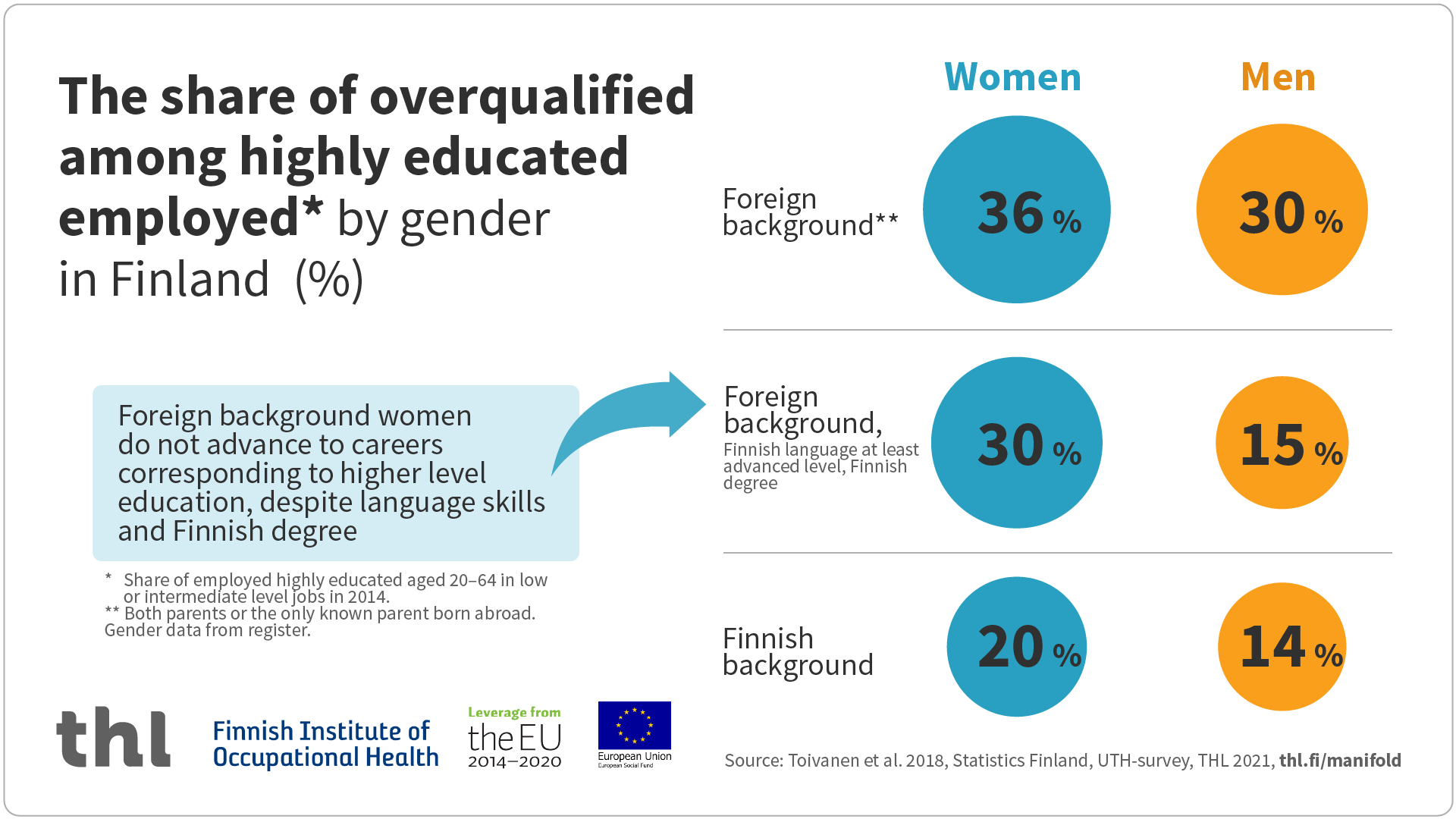 More than one in three highly educated women of foreign background is overqualified for their current jobs compared to every fifth Finnish-born woman.