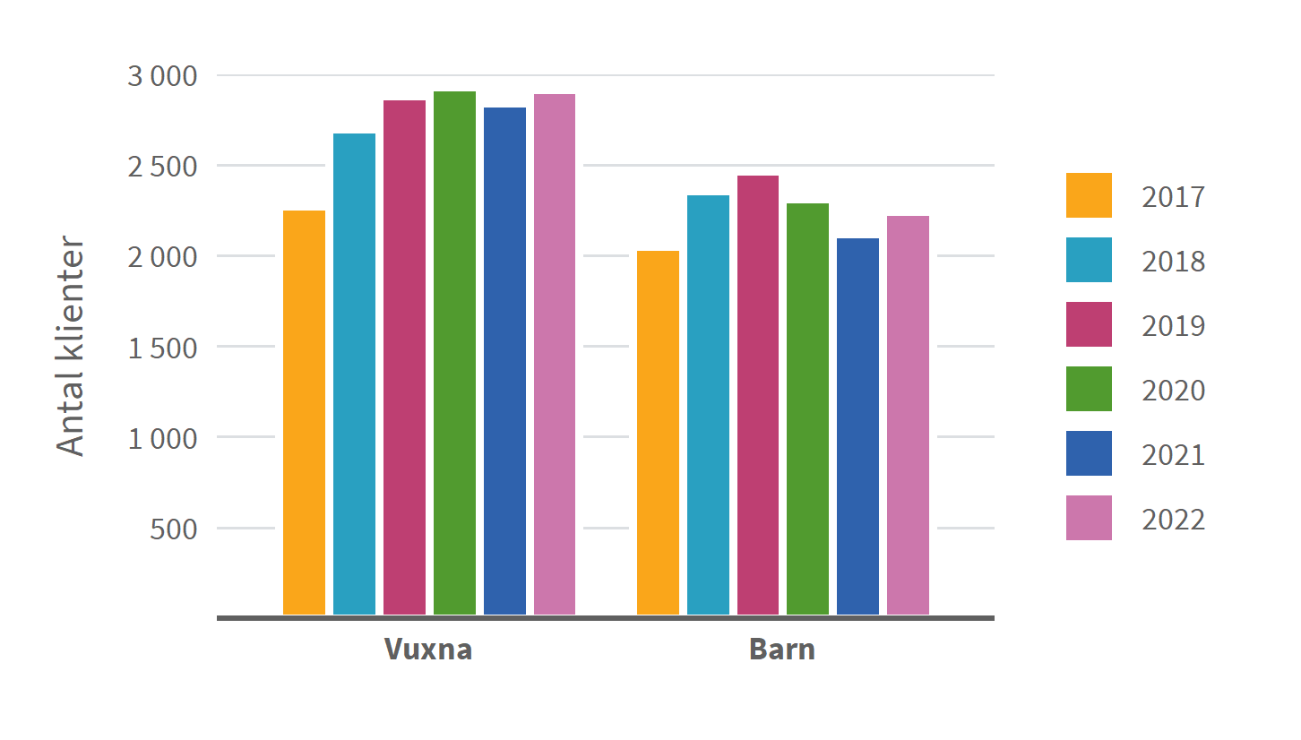 Figur 1. Antal klienter på skyddshemmen 2017–2022.