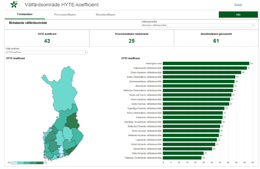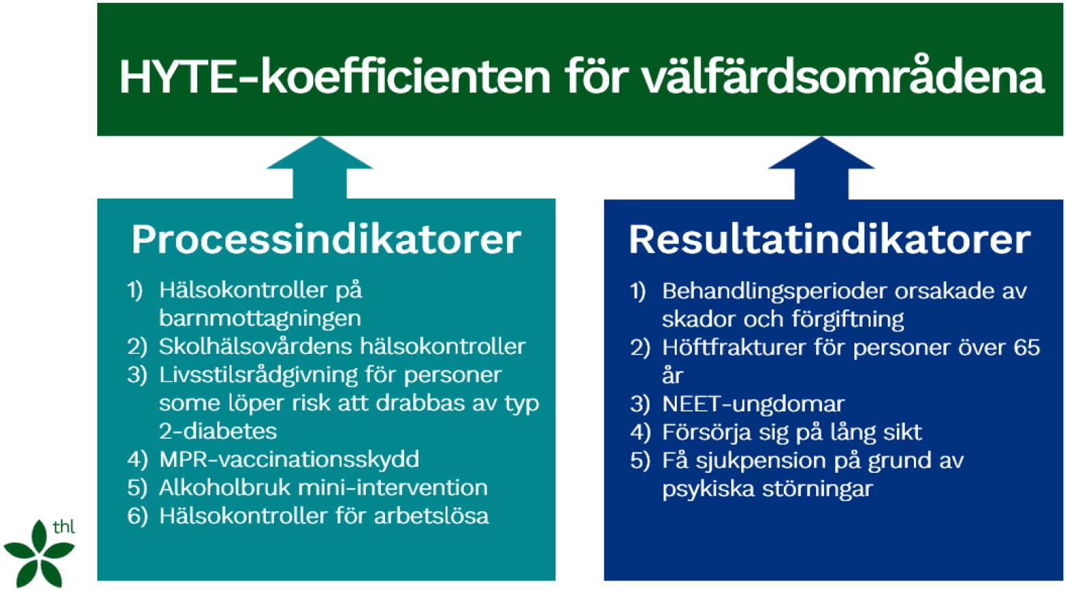 Som grund för den statliga finansieringen av välfärdsområdenas social- och hälsovårdsuppgifter tas koefficienten för främjande av välfärd och hälsa, dvs. HYTE-koefficienten i bruk. Från och med 2023 fördelas summan enligt HYTE-koefficienten på välfärdsområdena enligt invånarantalet. Indikatorer som beskriver verksamheten och resultaten på befolkningsnivå beaktas för första gången i fördelningen av finansieringen för 2026. (Lag om välfärdsområdenas finansiering 617/2021)