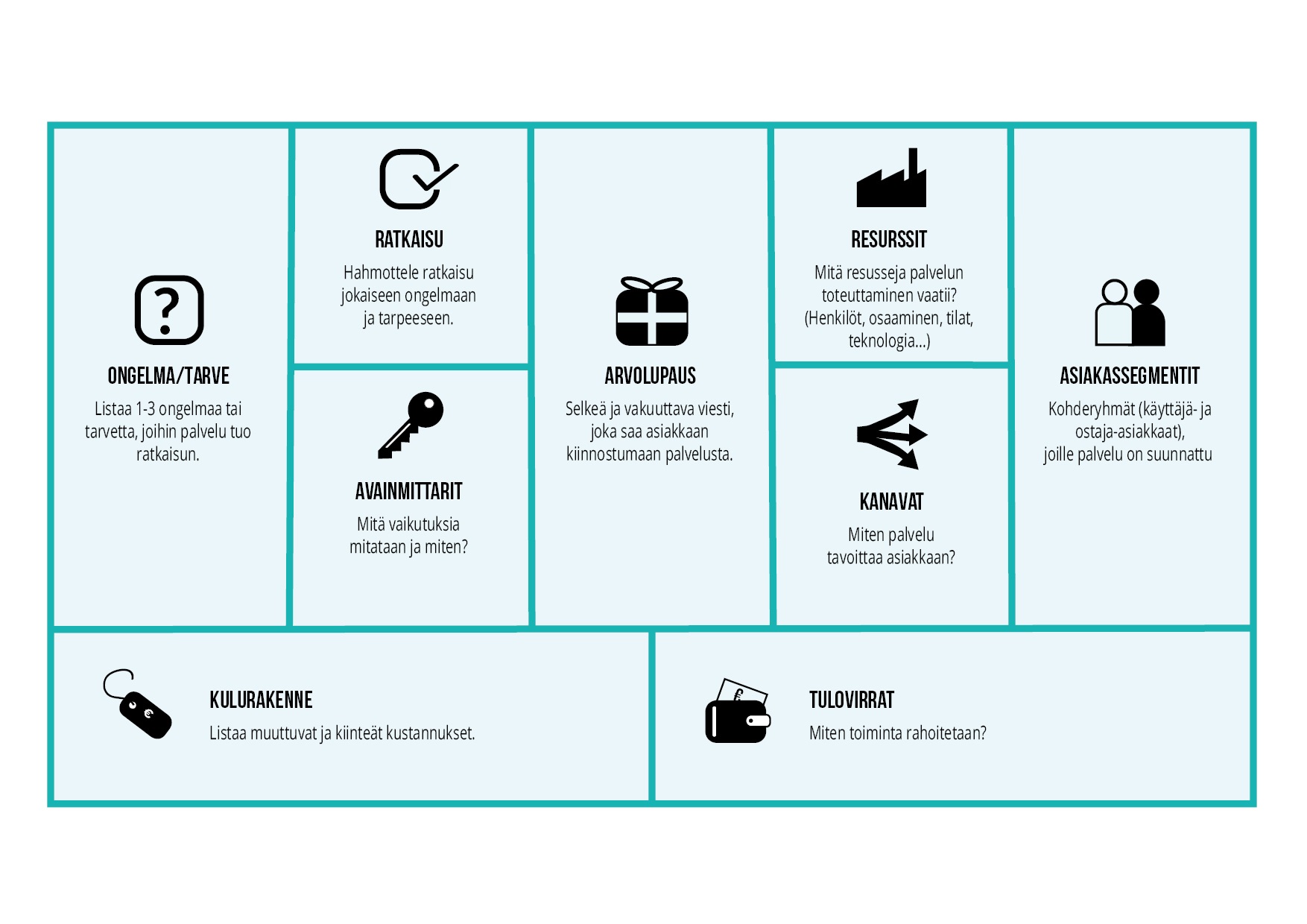 Lean Canvas -taulukko (pdf 28 kt)